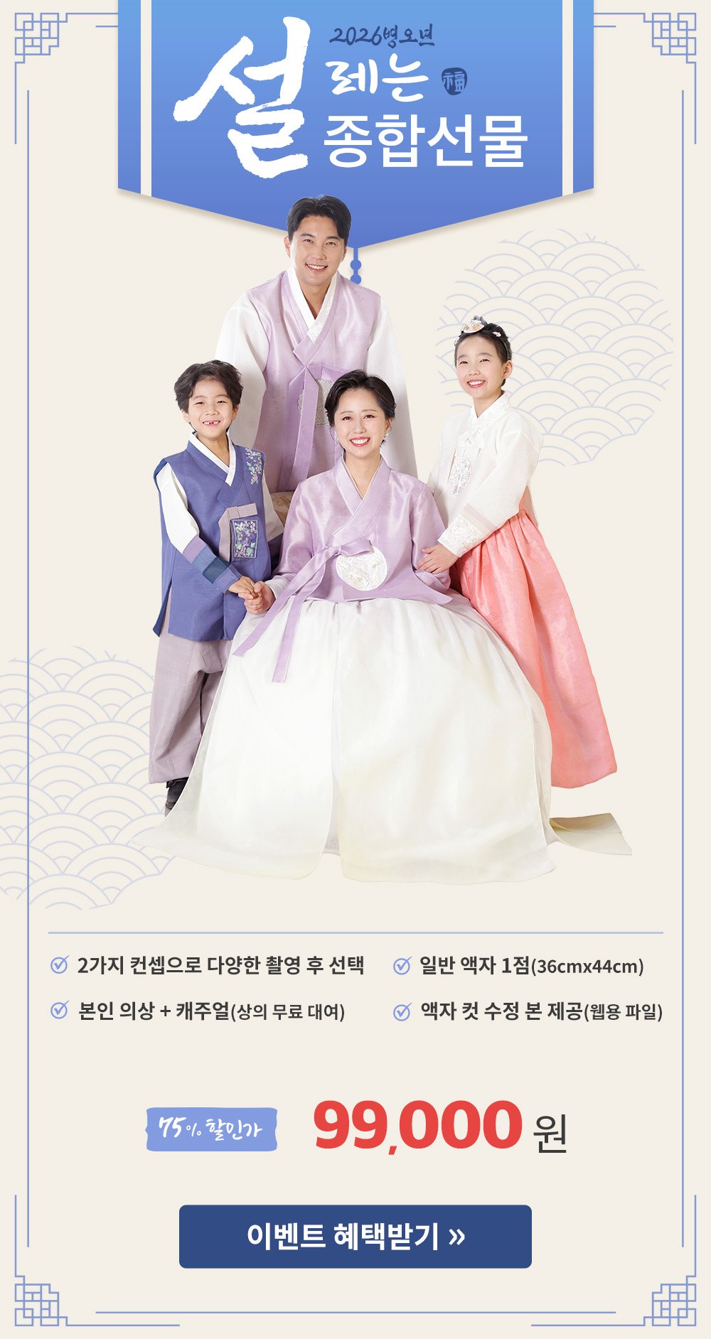 •  가족사진 촬영 시간은 총 3시간 정도 소요됩니다.